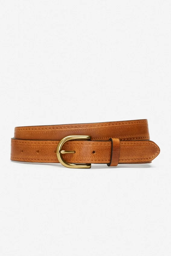 Largeur 3,2 cm | Cuir pleine fleur | Motif gaufré | Boucle en nickel mat | Boucle simple
