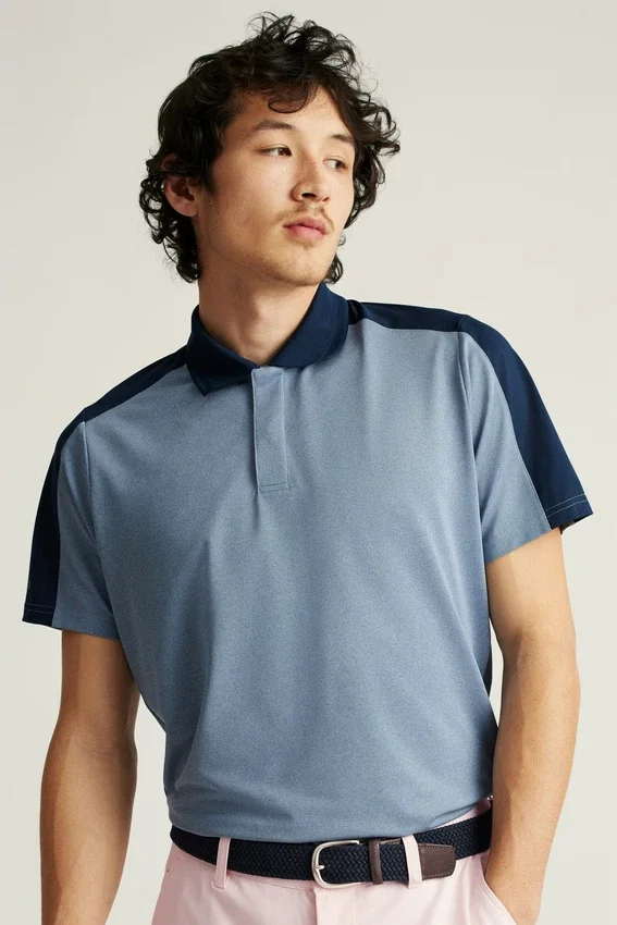 Le style sportif classique rencontre la technologie moderne dans nos chemises Tour Pique à évacuation de l’humidité, dotées d’élégants empiècements colorés et d’un tissu UPF léger.