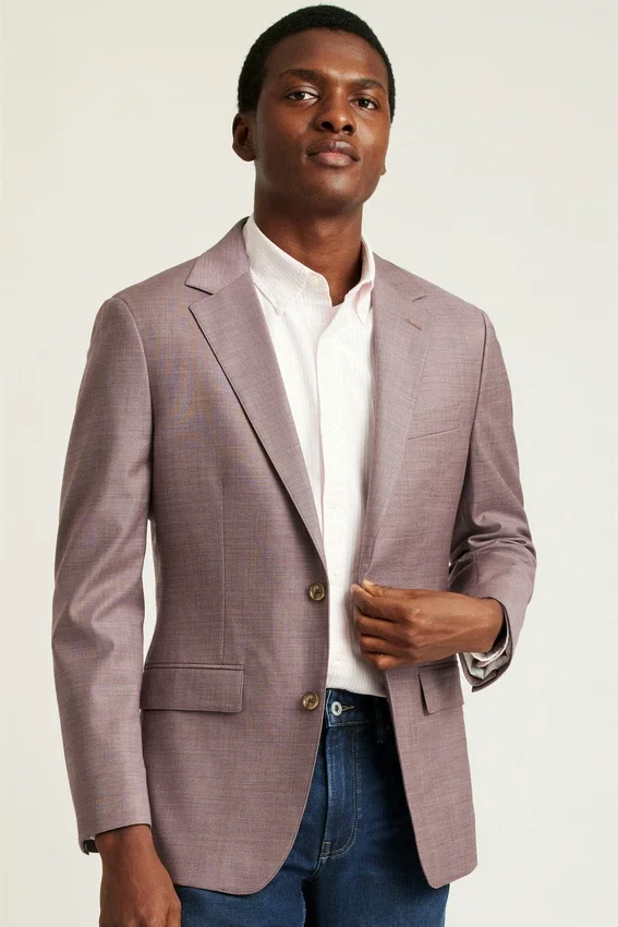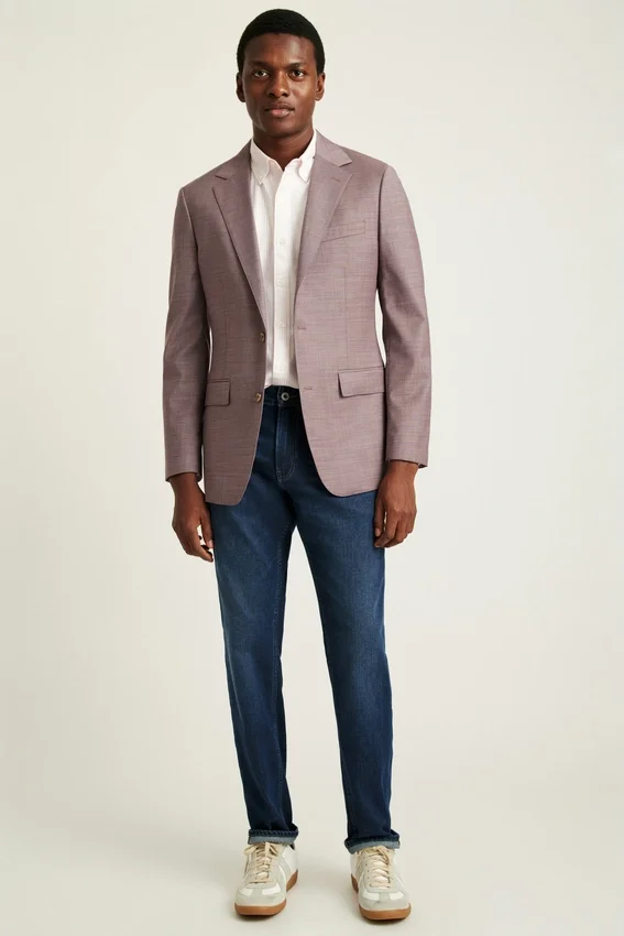 Revers cranté | Poches à rabat | Coupe droite à deux boutons | Intérieur entièrement doublé | Doublure aux manches | Boutons décoratifs aux poignets | Double fente | Poches intérieures et boucle de suspension
