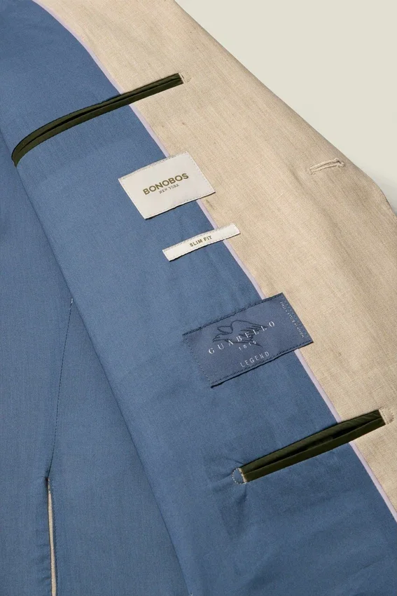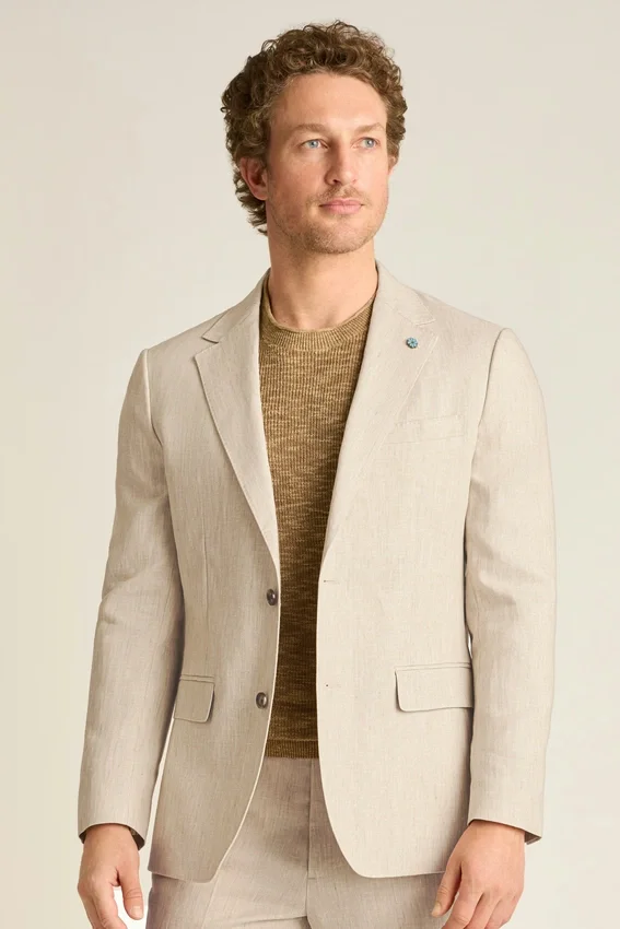 Coupe légère en lin italien. À porter séparément ou en costume complet avec un pantalon de costume assorti.