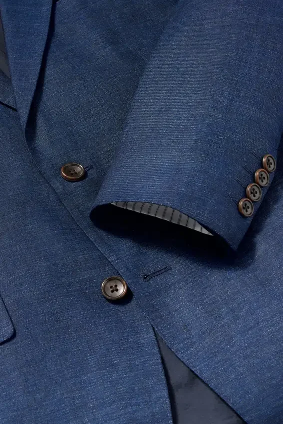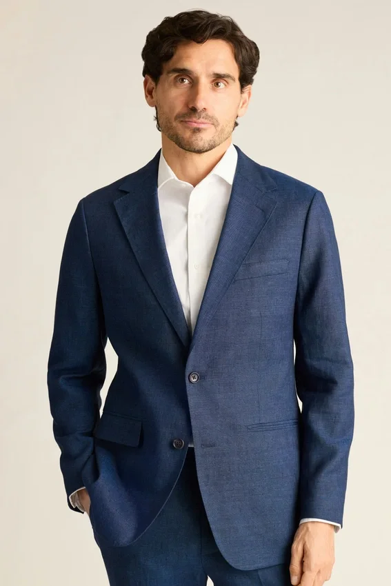 Coupe légère en lin italien. À porter séparément ou en costume complet avec un pantalon de costume assorti.