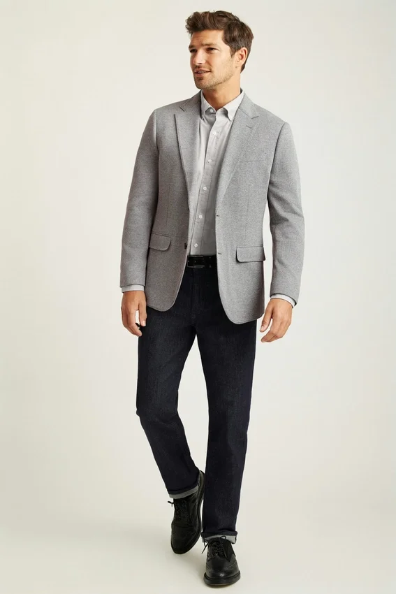 Un blazer polyvalent tricoté pour plus d’élasticité. Idéal pour les trajets quotidiens ou pour toutes les occasions où vous devez avoir une allure impeccable.
