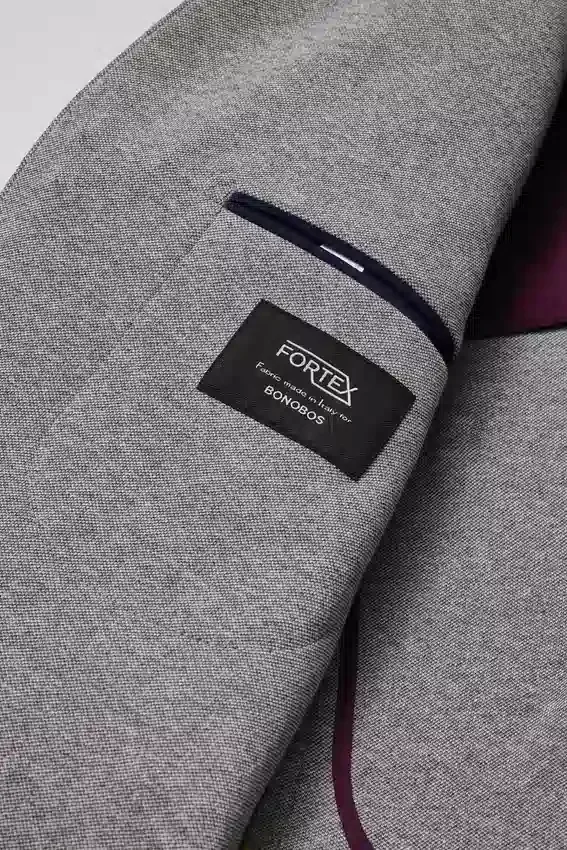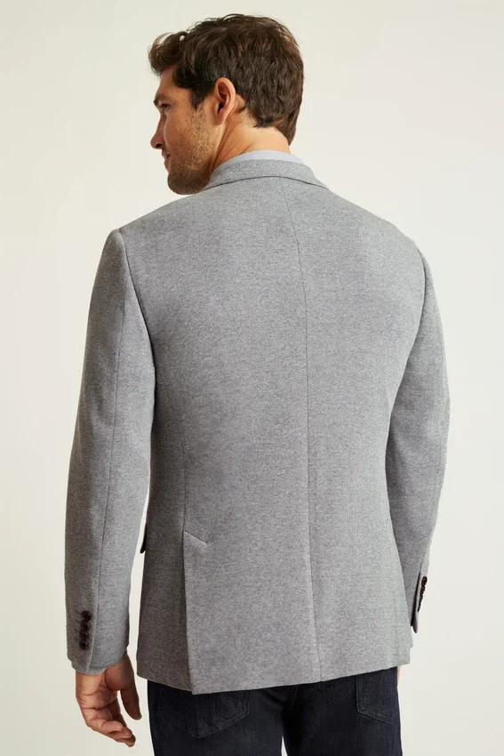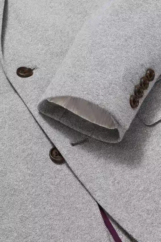 Blazer toutes saisons à doublure minimale, confectionné dans un tissu mélangé en maille haut de gamme de Lanificio Fortex | 8,25 cm | Poches à rabat | Veste croisée à deux boutons | Intérieur non doublé avec renforts aux épaules et bordures aux coutures | Doublure aux manches | Boutons décoratifs aux poignets | Double fente | Coupe légère | Poches passepoilées intérieures