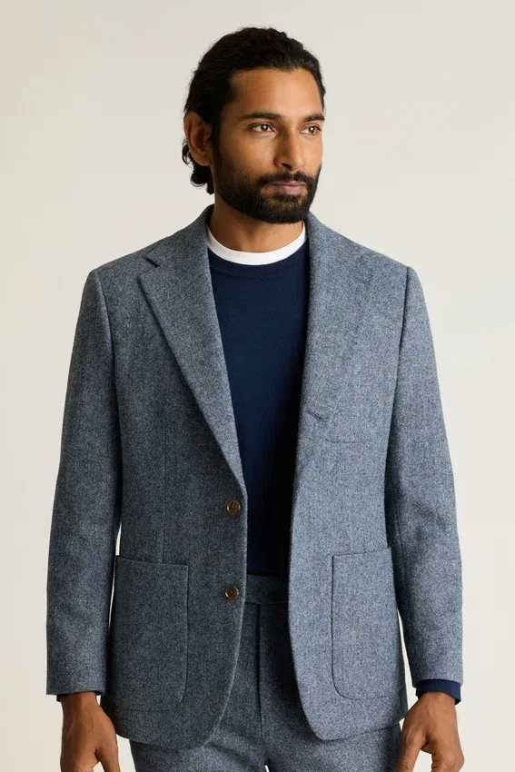 Tissu Abraham Moon | Construction entièrement entoilée | Peut être porté boutonné deux ou trois fois pour un look personnalisable | Intérieur entièrement doublé | Doublure des manches | Poches intérieures | Fentes arrière