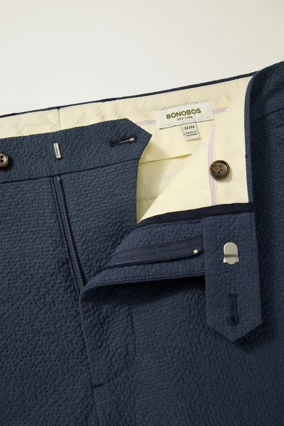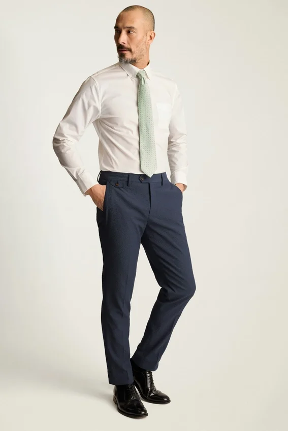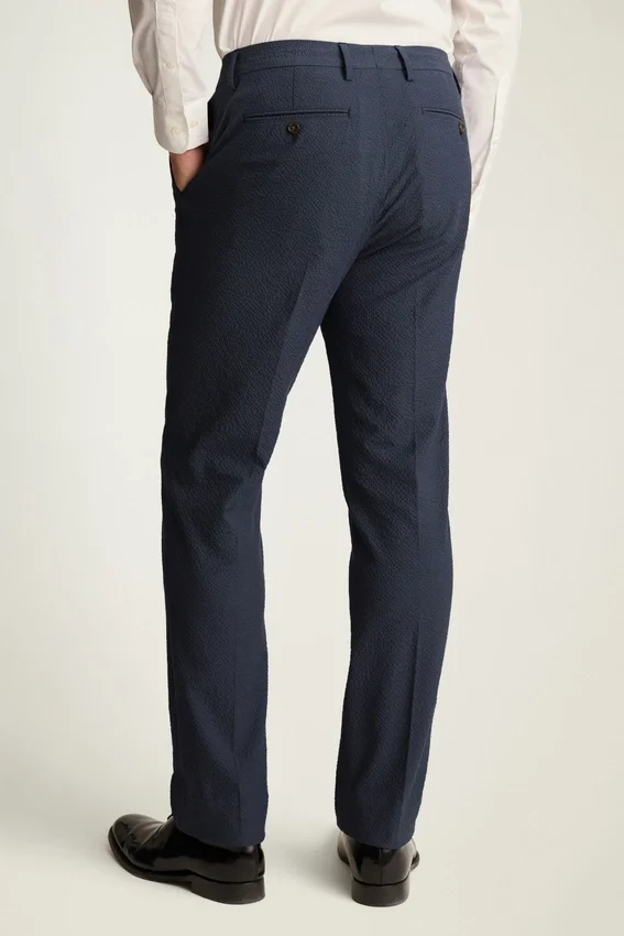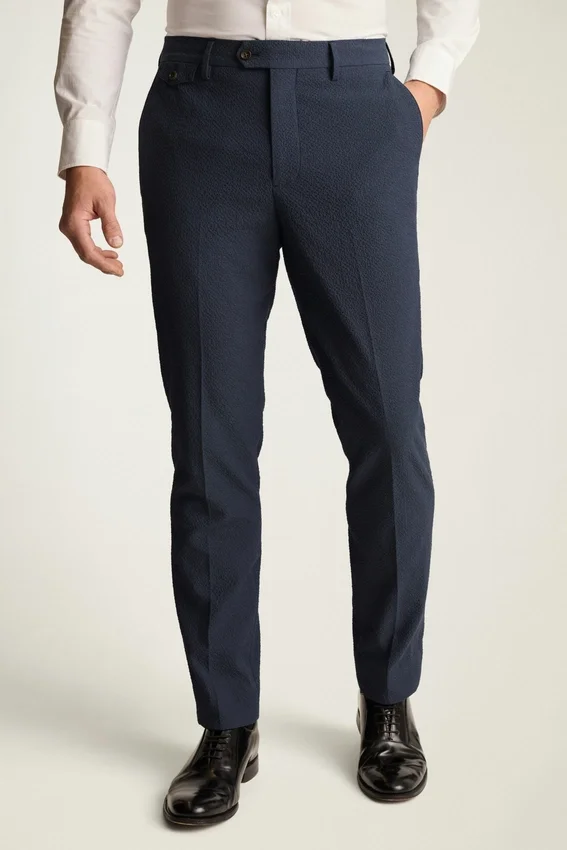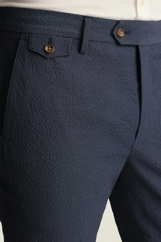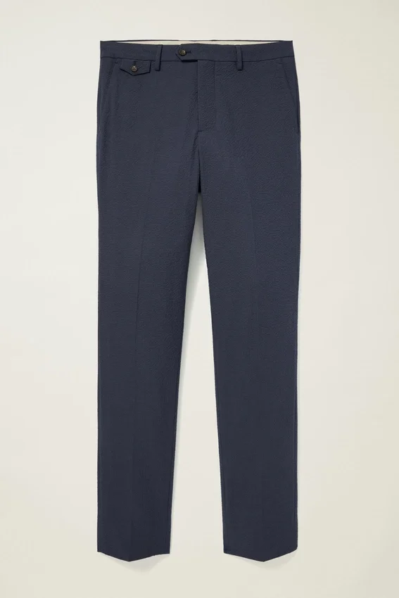 Un pantalon de costume en seersucker léger, prêt à ajouter du charme à toutes vos sorties par temps chaud.