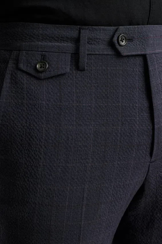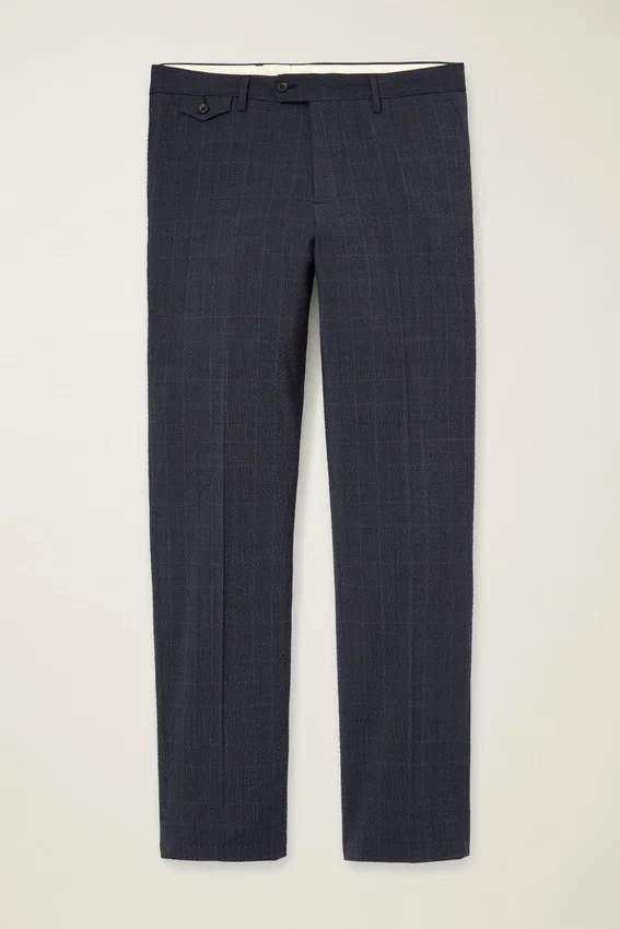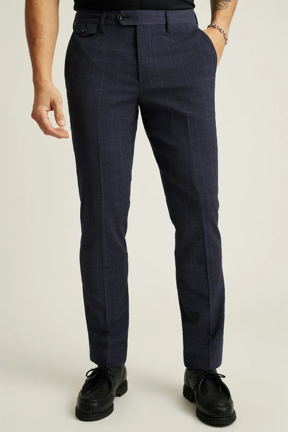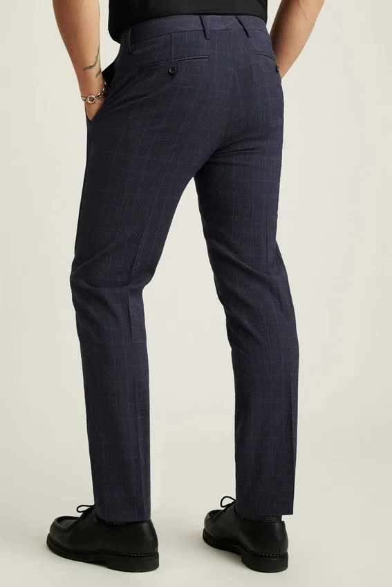 Un pantalon de costume en seersucker léger, prêt à ajouter du charme à toutes vos sorties par temps chaud.