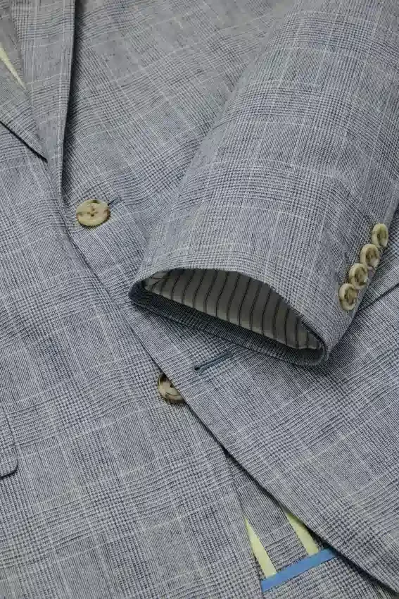 Intérieur non doublé avec bordures aux coutures | Boutons décoratifs aux poignets | Doublure aux manches | Doubles fentes | Poches intérieures | Boucle de suspension