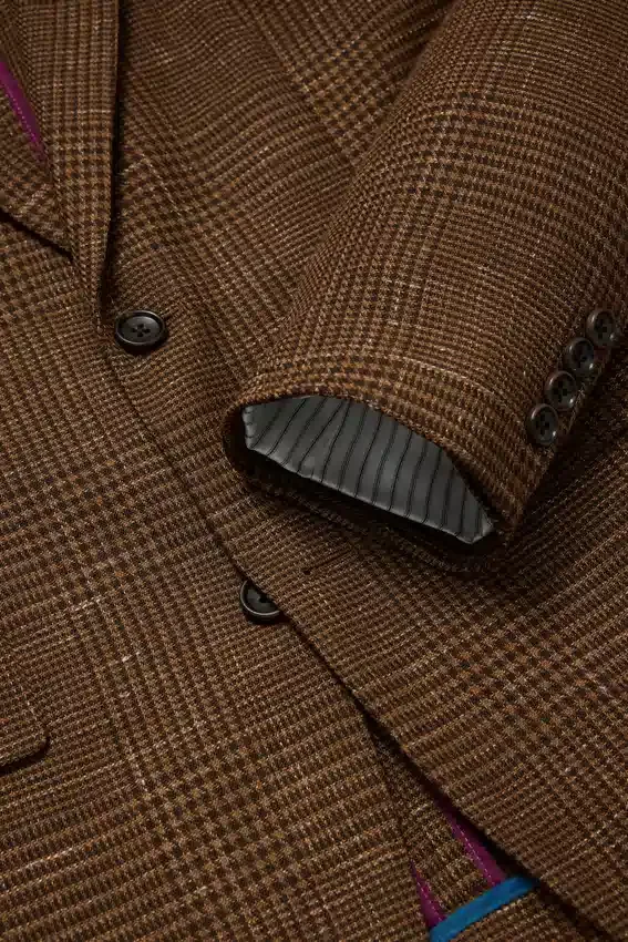 Non doublé avec bordures aux coutures | Boutons décoratifs aux poignets | Doublure aux manches | Double fente | Poches intérieures | Boucle de suspension