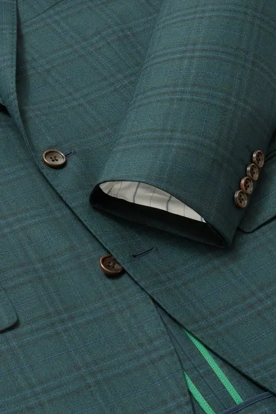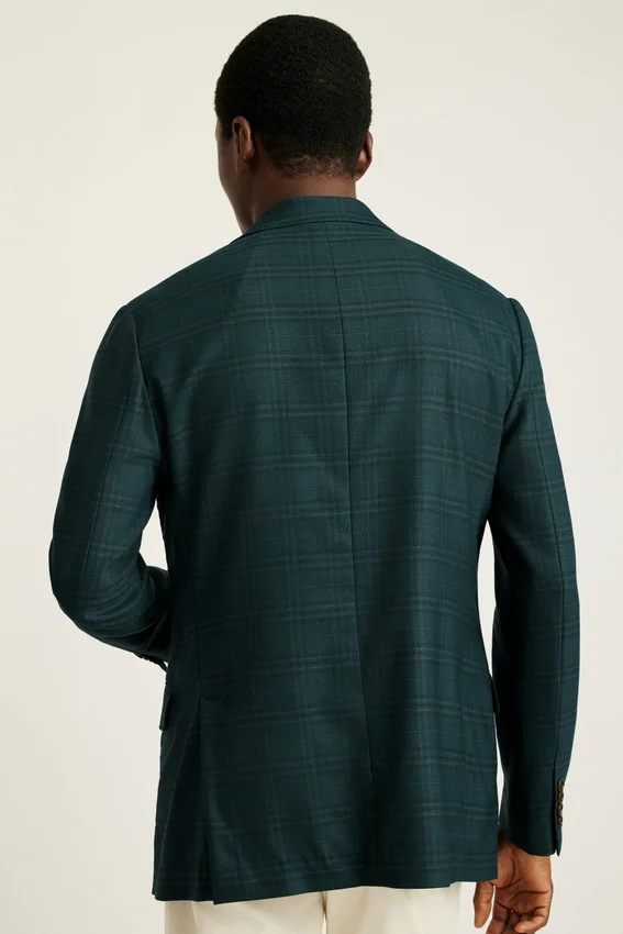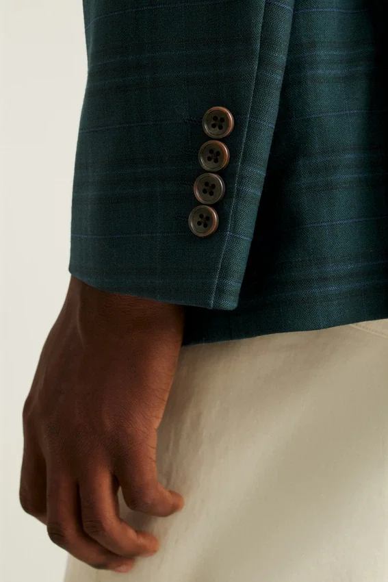 Caractéristiques de la veste : revers modernes de 6,35 cm | double boutonnage, double fente avec passepoil contrasté et poignets à boutons non fonctionnels | Doublée uniquement aux manches