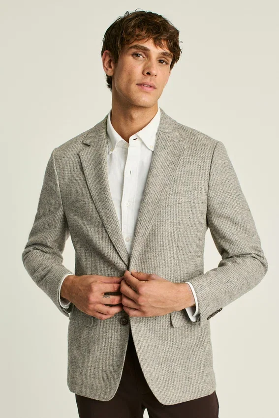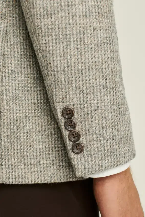 Tissu Abraham Moon | Intérieur non doublé avec bordures aux coutures | Boutons décoratifs aux poignets | Doublure aux manches | Double fente | Poches intérieures et boucle de casier