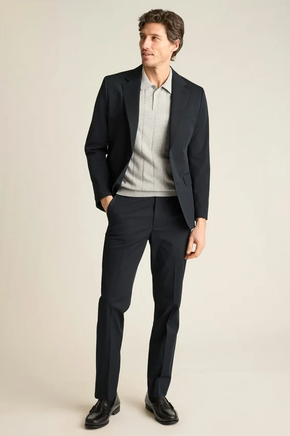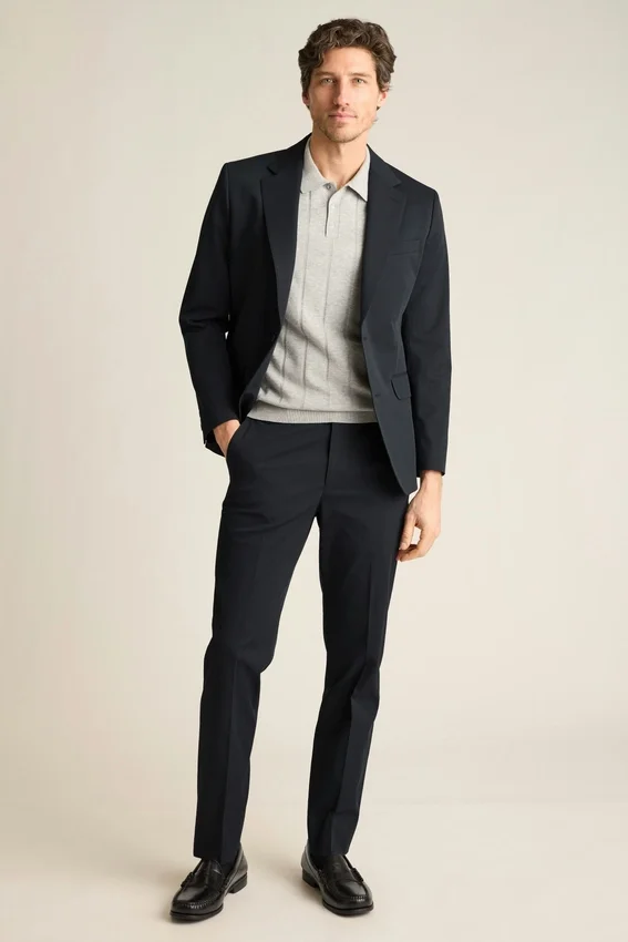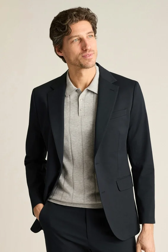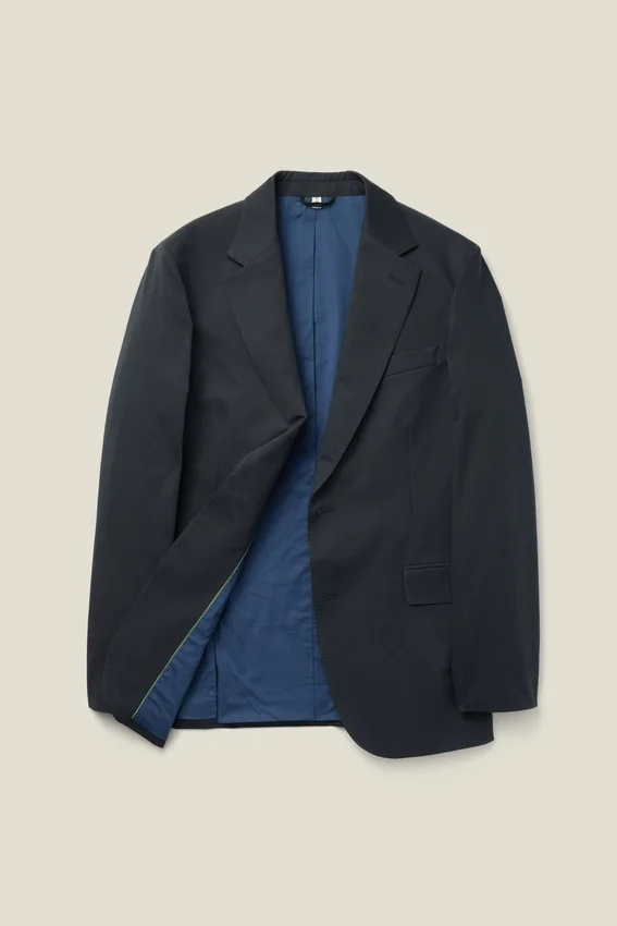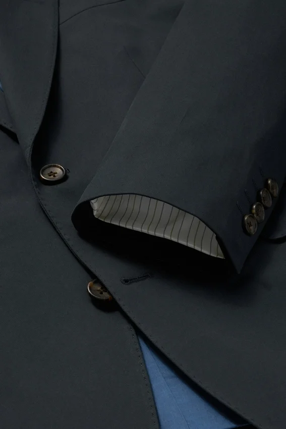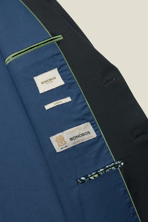 Tissu Manteco | Construction semi-entoilée | Revers en V | 2 boutons sur le devant | Double fente | Poignets à boutons non fonctionnels pour faciliter l’ajustement des manches | Intérieur entièrement doublé | Broderie fleur Bonobos personnalisée à l’intérieur | Imprimé Bonobos personnalisé à l’intérieur