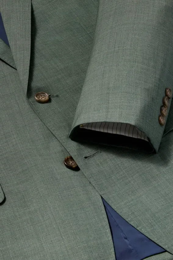 Tissu Zignone | Construction partiellement entoilée | Intérieur entièrement doublé | Doublure des manches | Boutons non fonctionnels aux poignets | Double fente | Poches intérieures et boucle de suspension