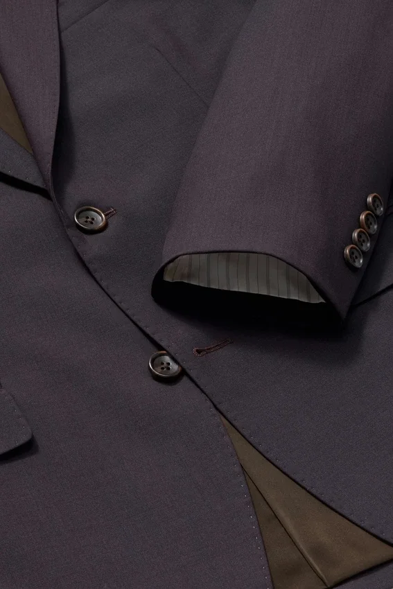 Tissu Marlane | Construction semi-entoilée | Intérieur entièrement doublé | Doublure aux manches | Boutons décoratifs aux poignets | Double fente | Poches intérieures et boucle de suspension