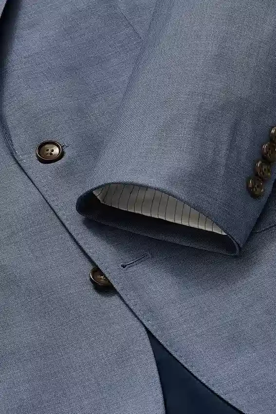 Construction partiellement entoilée | Intérieur entièrement doublé | Doublure aux manches | Boutons non fonctionnels aux poignets | Double fente | Poches intérieures et boucle de suspension