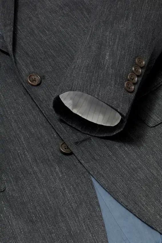 Tissu d’origine italienne | Fermeture à 2 boutons | Poches à rabat | Doublure intérieure intégrale | Poches intérieures | Doubles fentes arrière