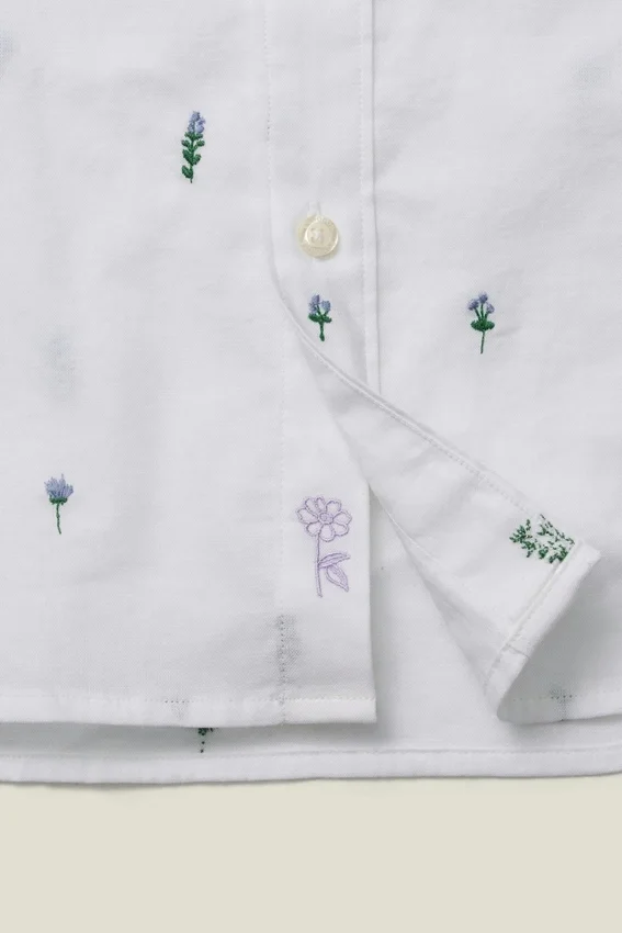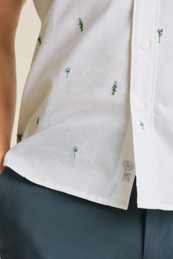Poche poitrine | Ourlet légèrement arrondi | Broderie florale Bonobos sous la patte de boutonnage