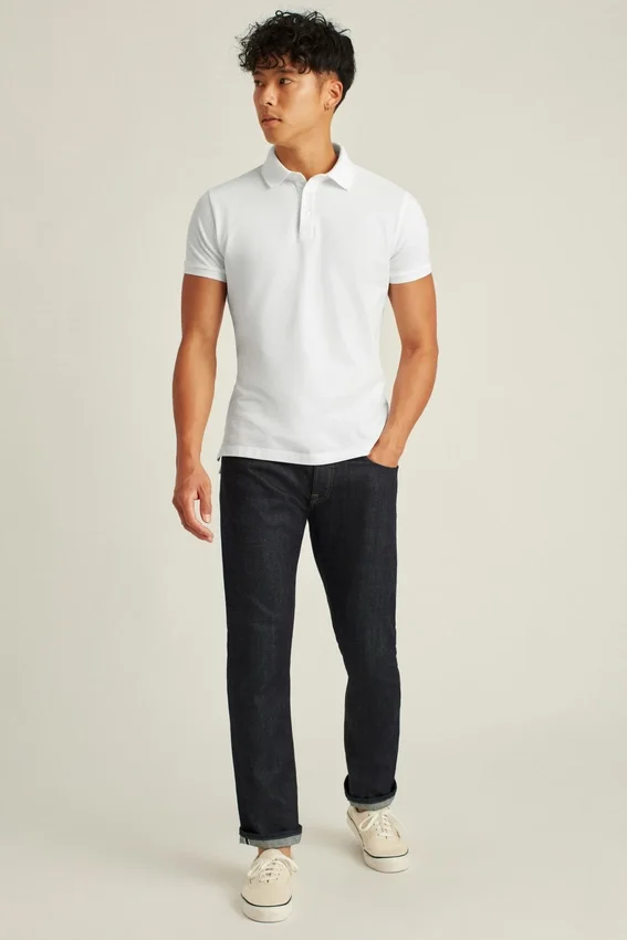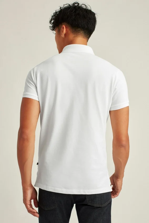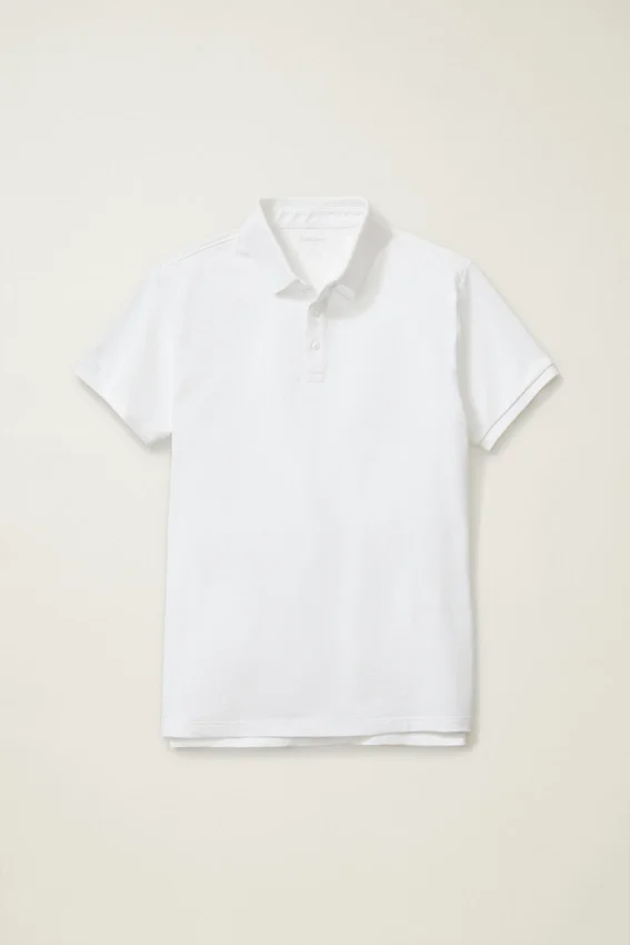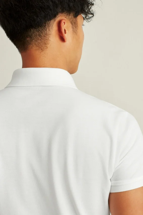 Polo en piqué de coton | Col et poignets côtelés | Patte de boutonnage à 3 boutons | Ourlet évasé avec fente sur le côté