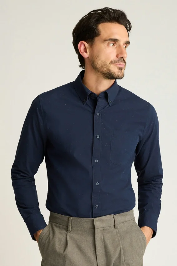 Col boutonné | Poche poitrine avant | Poignets à double bouton | Tissu extensible confortable