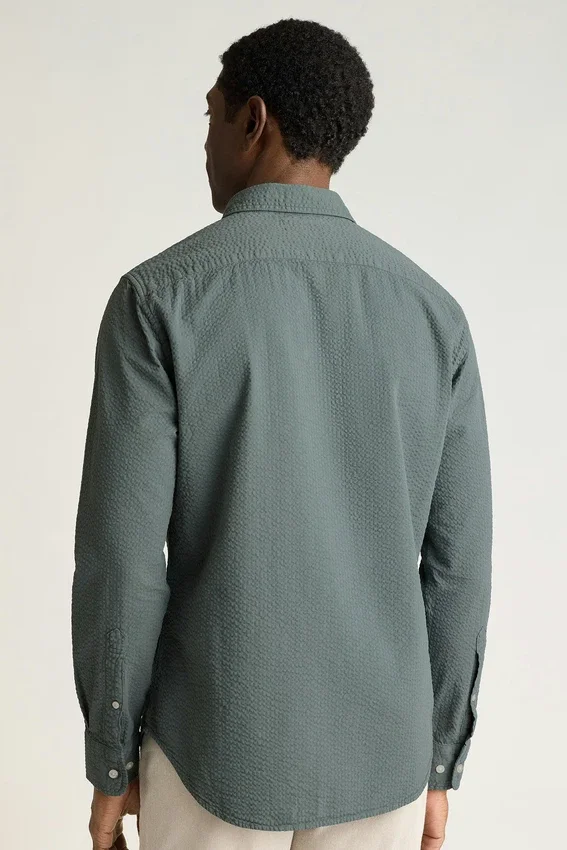 Le mannequin mesure 1,88 m, a un tour de poitrine de 102 cm et porte une chemise M en coupe Slim Fit et longueur standard.