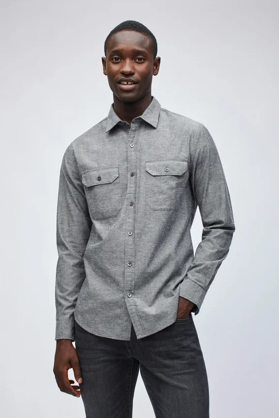 Chemise en chambray moucheté