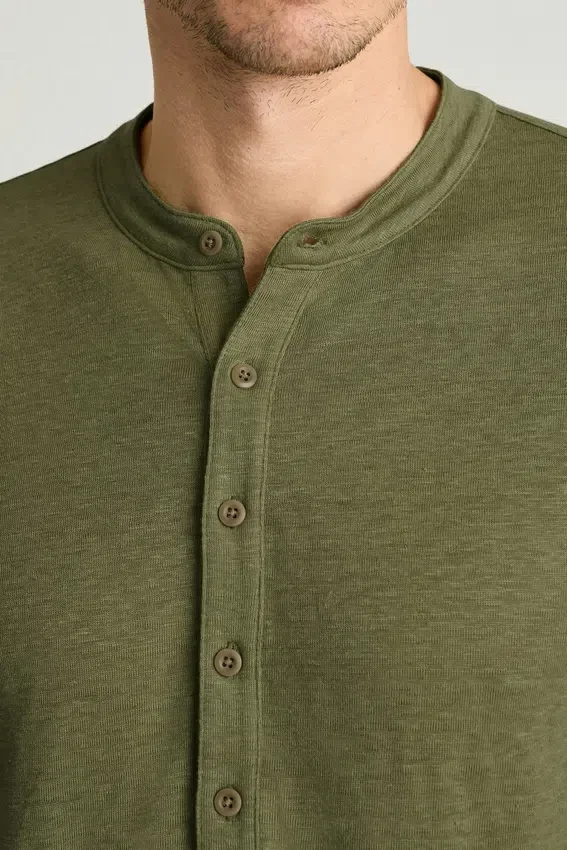100 % lin, alliant le look élégant d’une chemise à col montant et la facilité d’une chemise sans boutons.