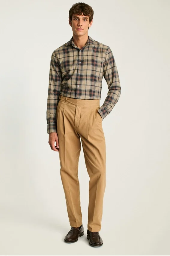 Tissu en laine mérinos brossée de Somelos | Patte de boutonnage à la française | Baguettes de col Bonobos à motif floral personnalisées | Poignets à double bouton | Véritables boutons en nacre