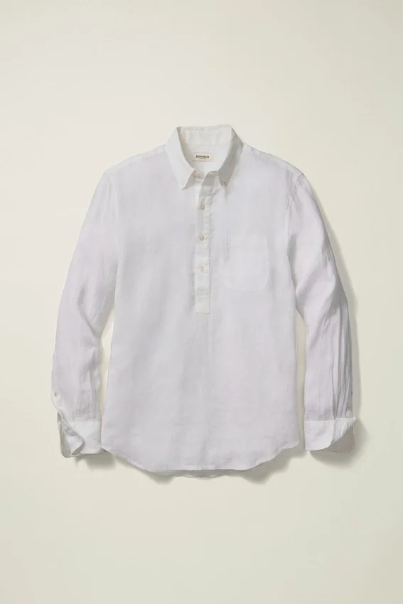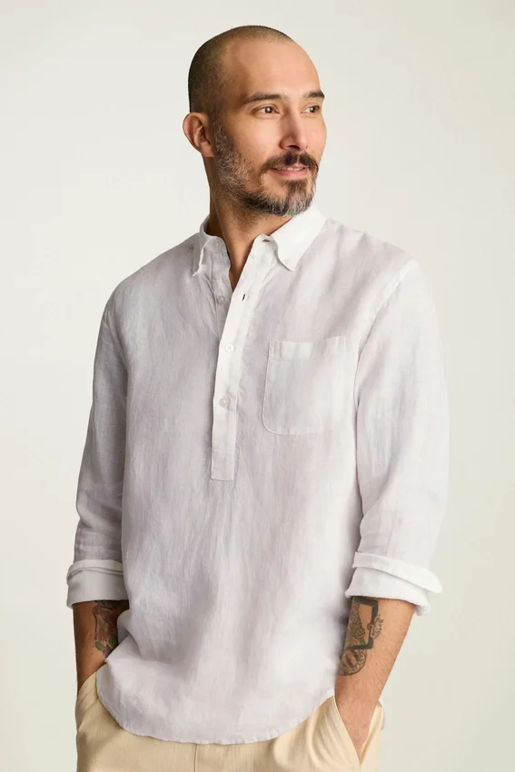 Découvrez la chemise en lin sans boutons polyvalente pour tous les jours chez Bonobos. Cette chemise à col offre un look impeccable tout en conservant une coupe décontractée, idéale pour votre garde-robe professionnelle.