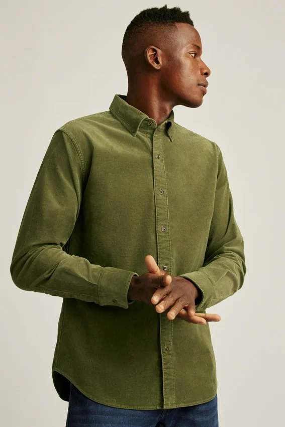 Velours côtelé moelleux avec une touche d’élasticité confortable. Suffisamment chaud pour être porté par-dessus un henley ou un t-shirt.