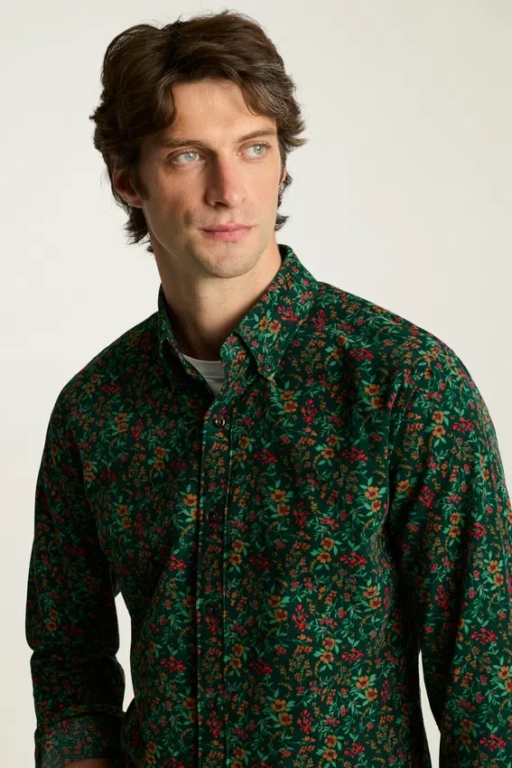 Col boutonné | Poche poitrine | Tissu en velours côtelé extensible et doux