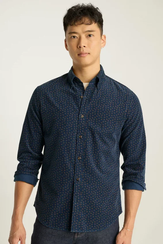 Col boutonné | Poche poitrine | Tissu en velours côtelé extensible et doux