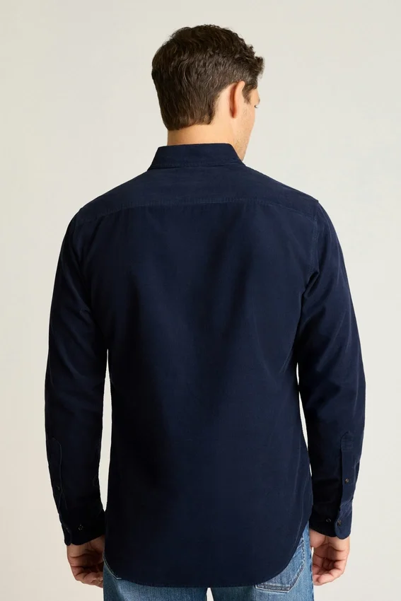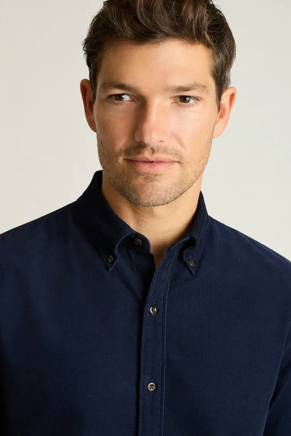 Col boutonné | Poche poitrine avant | Tissu en velours côtelé extensible et doux