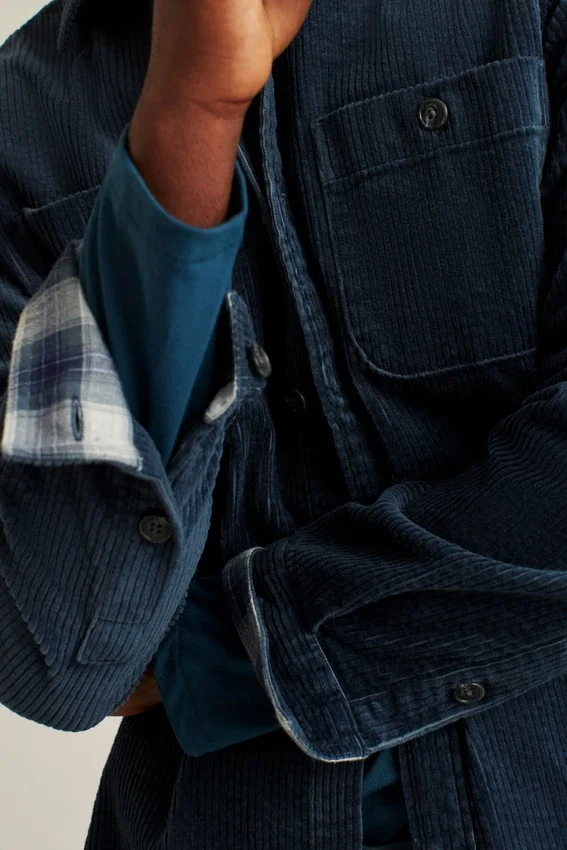 Un hybride chemise/veste en velours côtelé doux. La flanelle aux poignets et au col ajoute une touche de style supplémentaire.