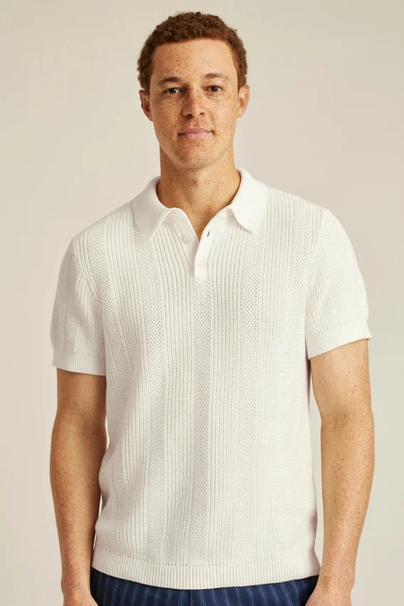 Nous avons repris votre pull préféré et l’avons coupé comme un polo. Style d’inspiration vintage aux accents décontractés.