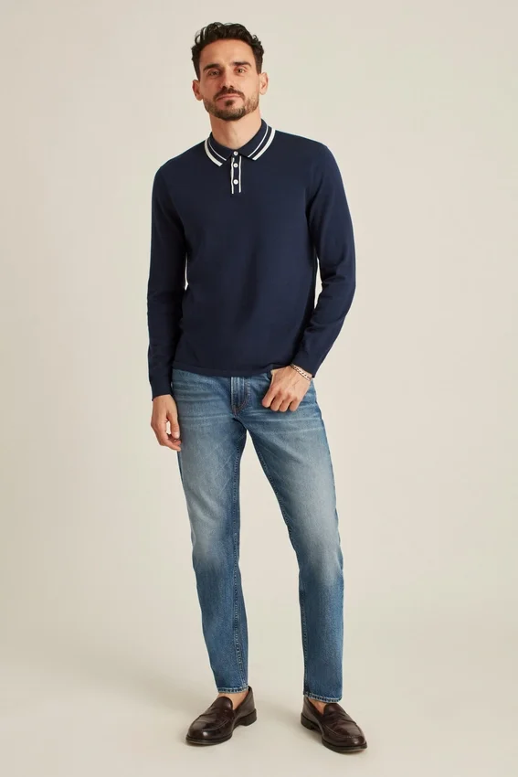 Fil de coton doux et léger pour le corps à col polo avec bordure contrastée pour une touche sophistiquée et rétro