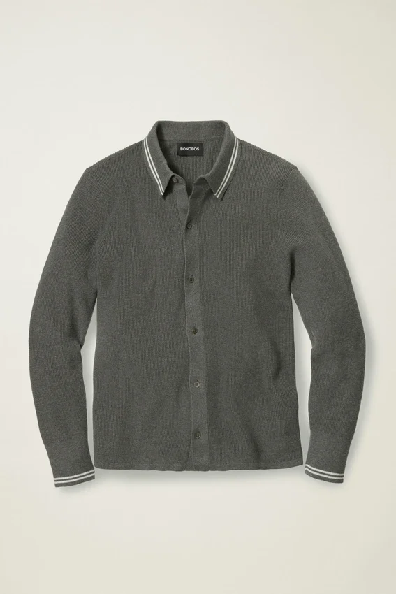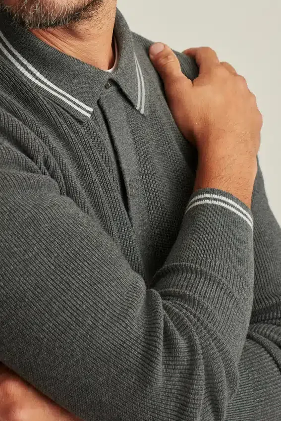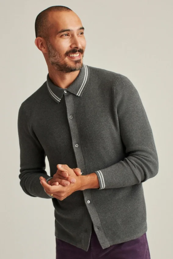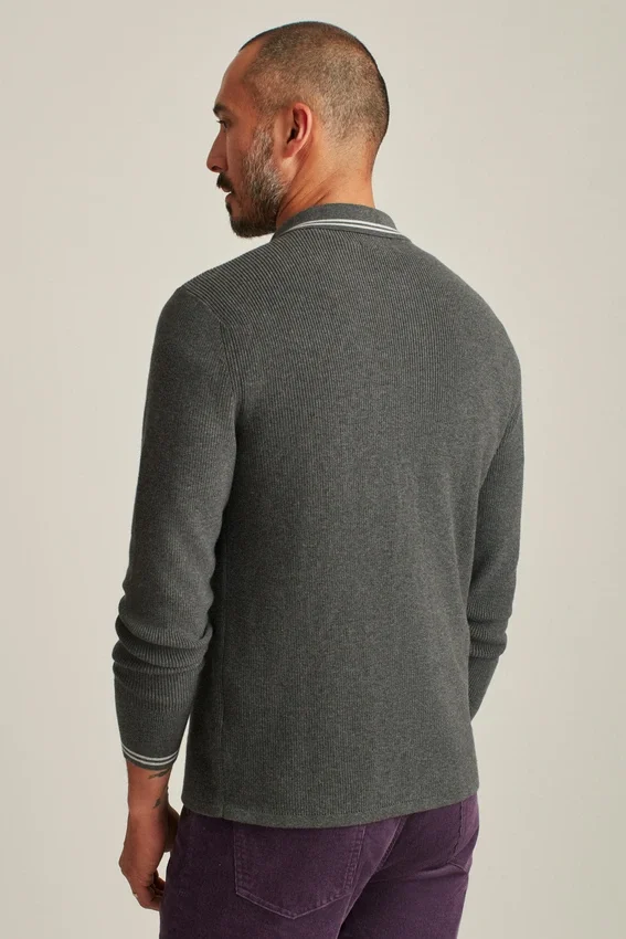 Tissu en coton doux et respirant pour le corps du polo à patte de boutonnage intégrale, avec une texture en côtes de pêcheur pour un look tendance | Bordures au col et à l’ourlet
