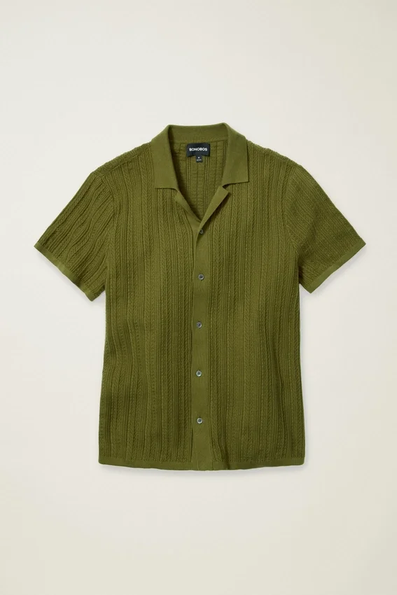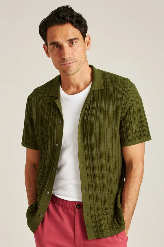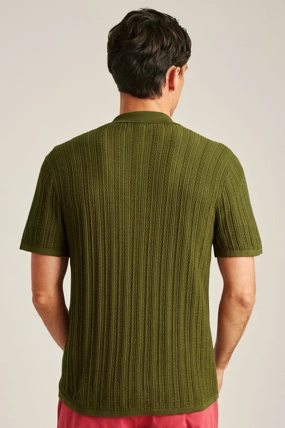 Fil de coton doux et respirant avec une maille texturée sur toute la surface pour un look à la fois décontracté et sophistiqué | Patte de boutonnage sur toute la longueur