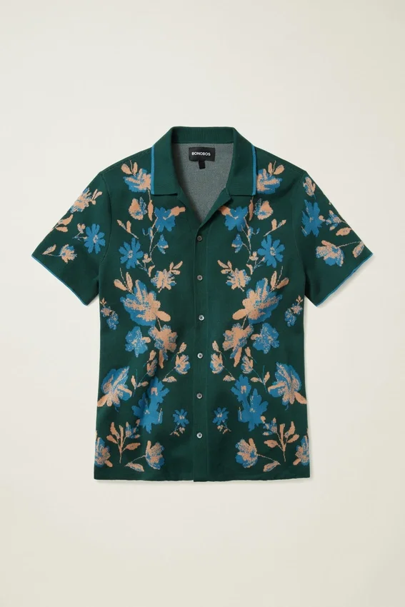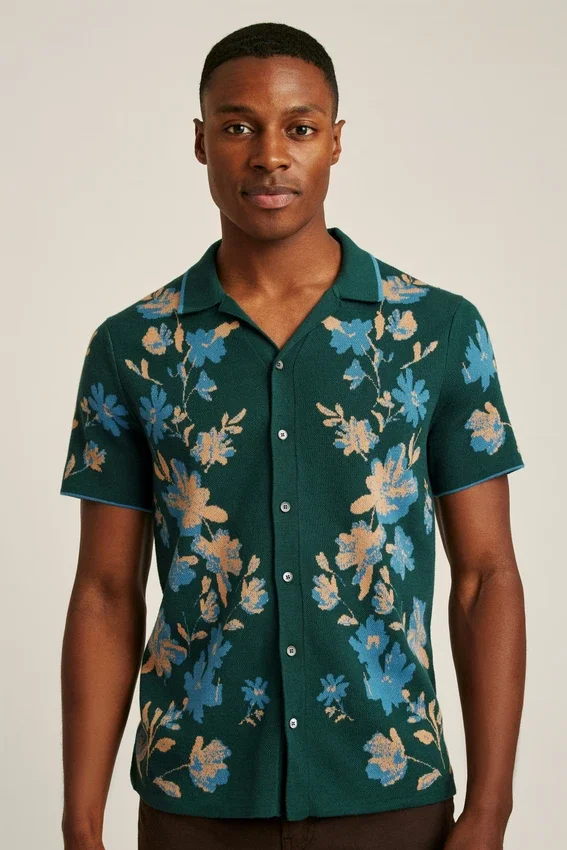 Fil de coton doux et respirant avec motif floral sophistiqué pour un look avant-gardiste | Patte de boutonnage sur toute la longueur