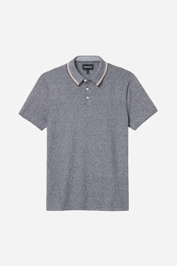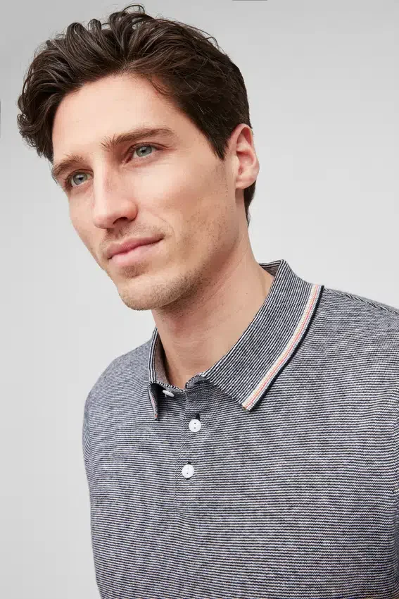 Fil doux et luxueux à rayures fines | Bordure contrastée au col | Patte de boutonnage à trois boutons