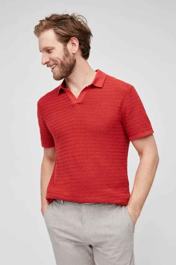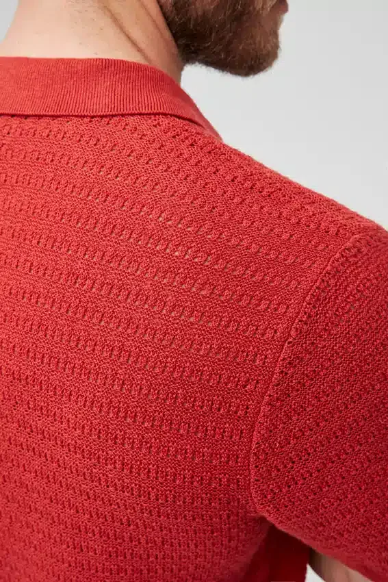 Fil de coton et lin léger et respirant | Col côtelé 1×1 avec patte de boutonnage ouverte