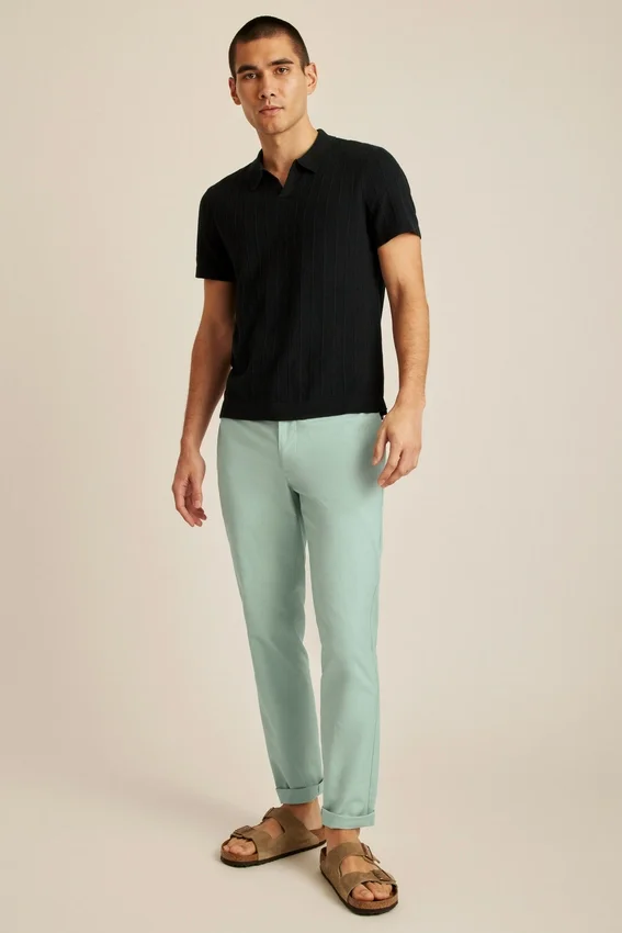 Fil de coton doux et respirant avec mailles texturées sur l’ensemble pour un look à la fois décontracté et sophistiqué
