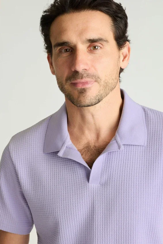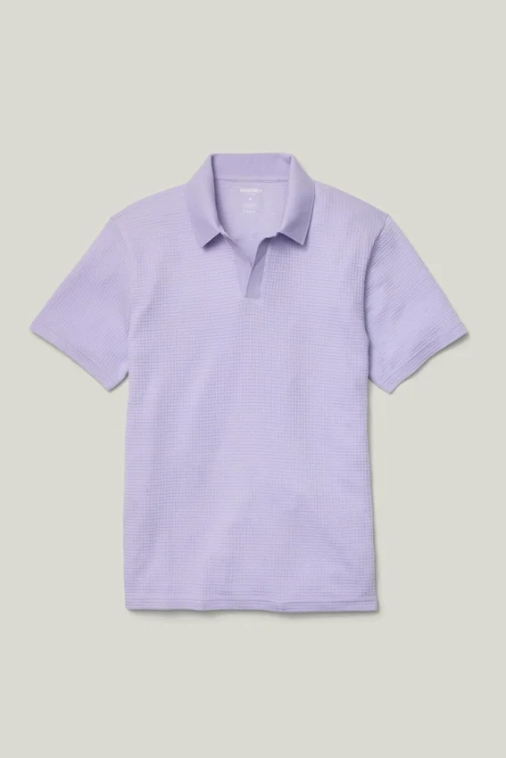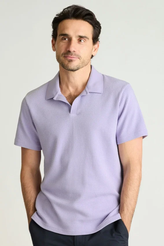 Avec sa texture gaufrée douce, ce polo s’accorde avec tout, du pantalon aux vêtements de sport.