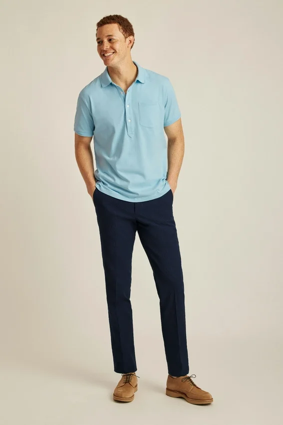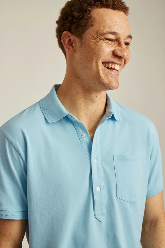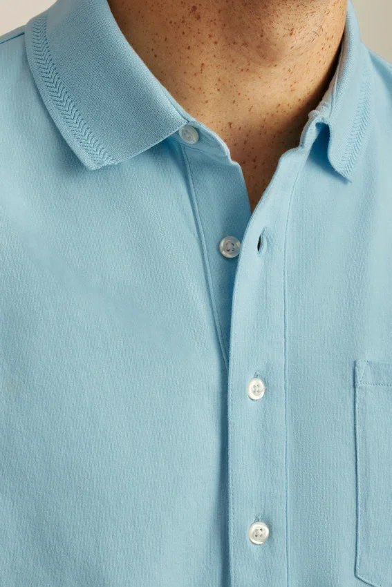 Coton jersey de poids moyen | Patte de boutonnage extra-longue | Col et poignets côtelés | Poche poitrine