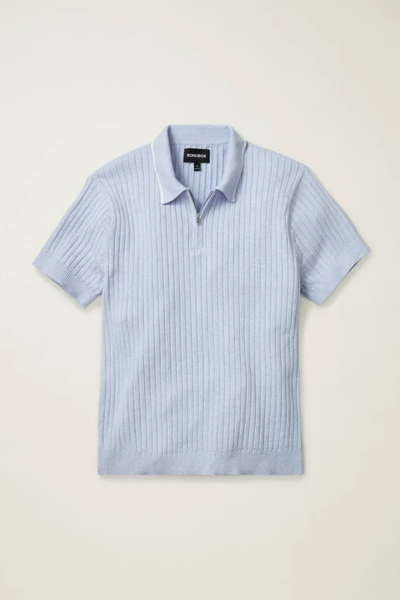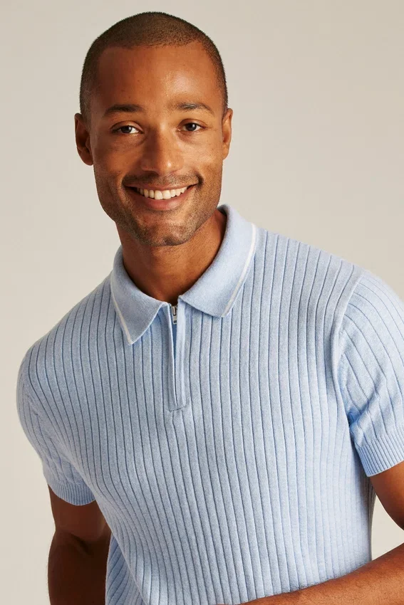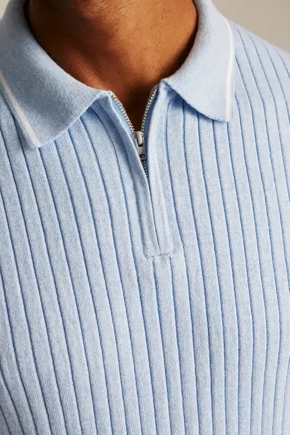 Mélange de coton rafraîchissant | Côtes larges sur toute la surface, bordure au col et fermeture à glissière au niveau du cou pour un look rétro sportif