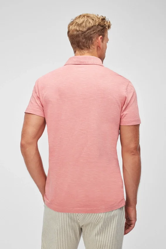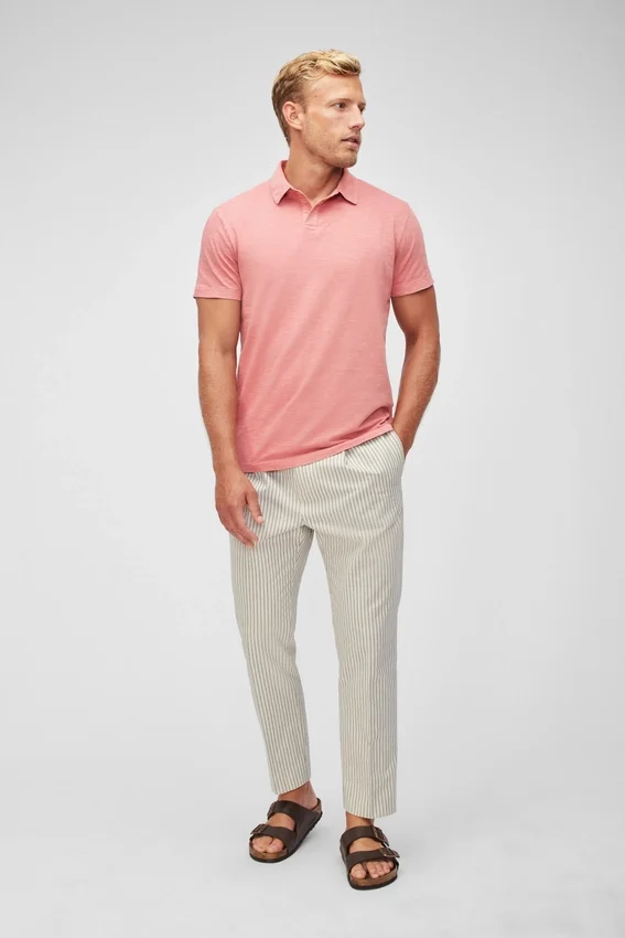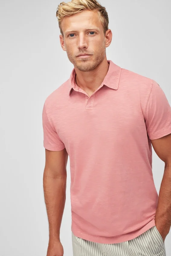 Tissu jersey slub léger et doux avec des couleurs délavées teintes en pièce pour un look et un toucher décontractés | Col Johnny rétro sans boutons