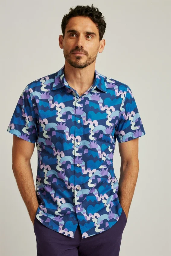 Tissu imprimé sur mesure | Manches courtes | Col en pointe