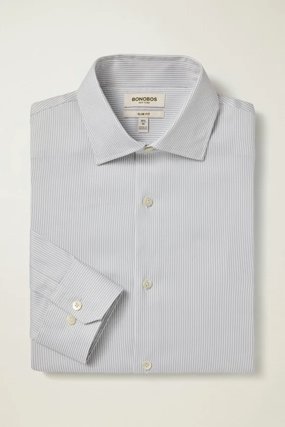 Patte de boutonnage à la française | Baguettes de col Bonobos emblématiques | Poignets à double bouton