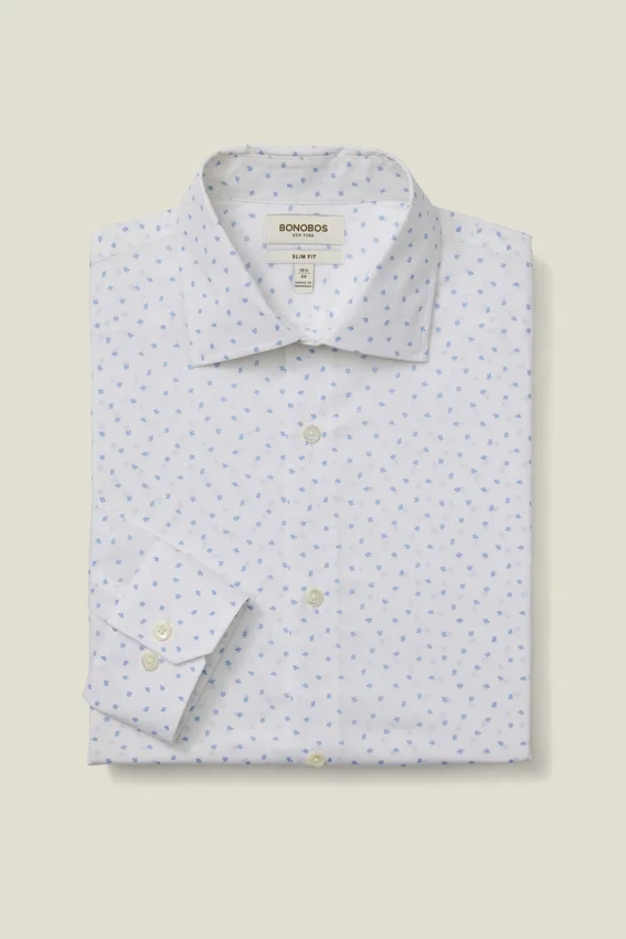 Patte de boutonnage à la française | Baguettes de col Bonobos emblématiques | Poignets à double bouton