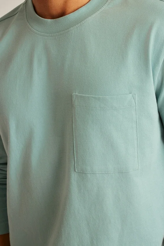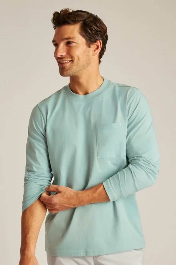 Tissu jersey de poids moyen en coton doux et respirant | Poche poitrine | Col à bord-côtes | Tissu de couleur contrastée à l’intérieur du col arrière