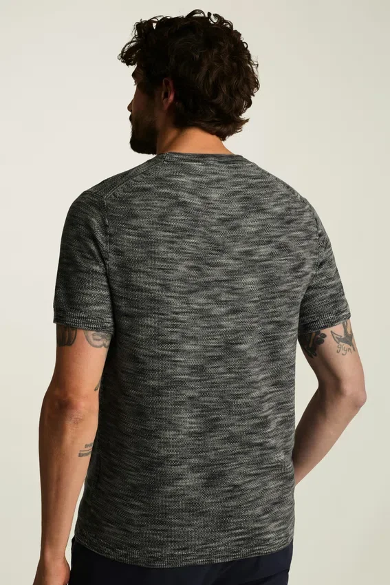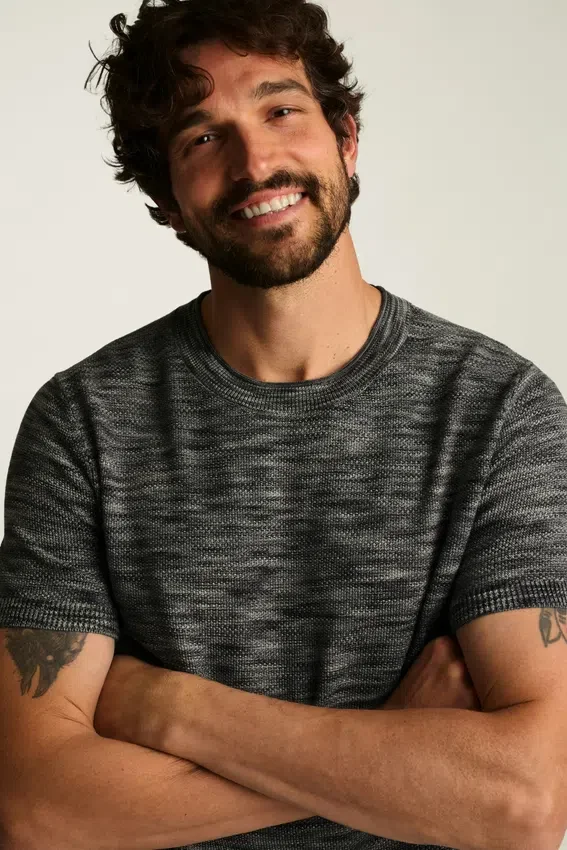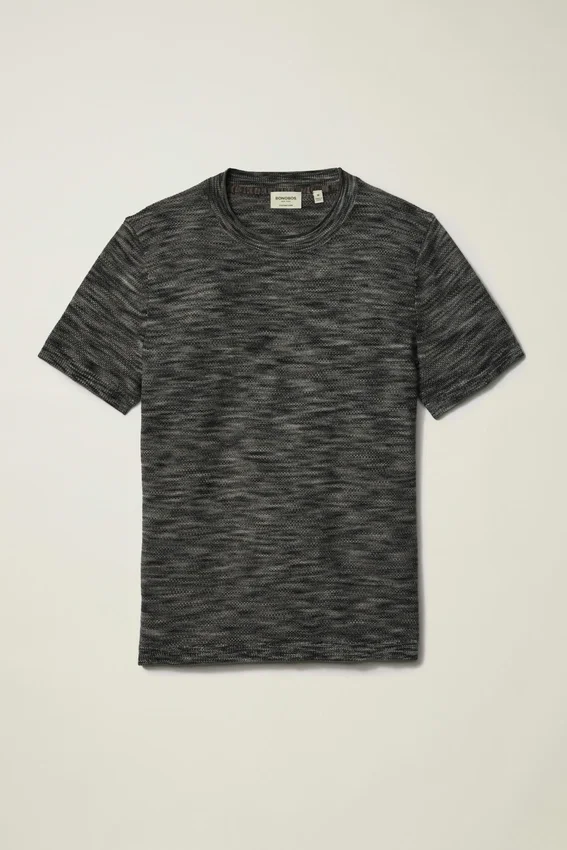 Coton biologique tissé en Italie | Fil teint en espace offrant profondeur et couleur | Mailles texturées sur toute la surface | Léger