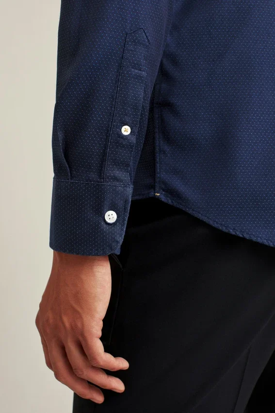 Col en pointe modifié | Poignets à double bouton | Patte de boutonnage française | Baleines de col « Stay Handsome »
